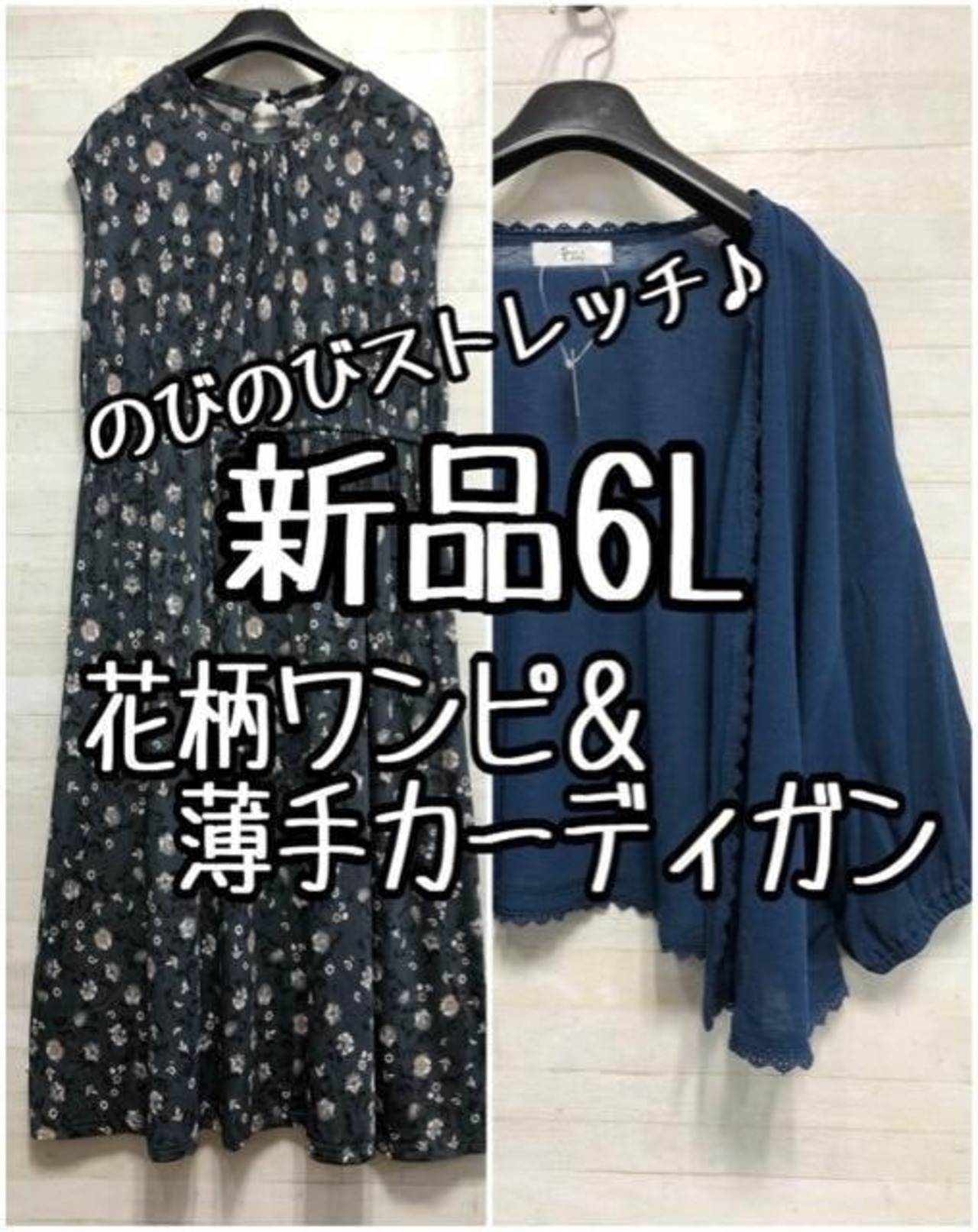 新品☆6L♪伸び伸びストレッチ♪薄手ワンピ&ボレロ風カーディガン☆D730