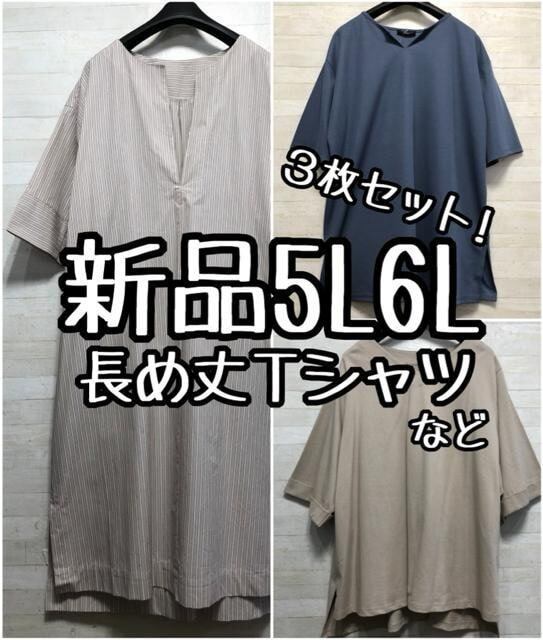 新品☆5L6L♪半袖ゆったり3枚♪ワンピース・長め丈Tシャツなど☆D751