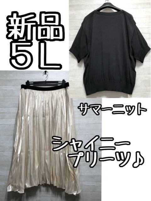 新品☆5L♪煌めくシャイニースカート&半袖サマーニット黒♪☆D764