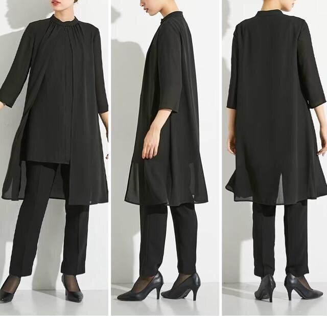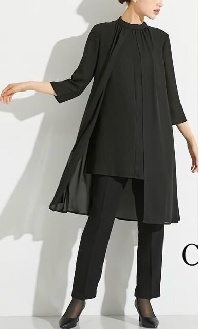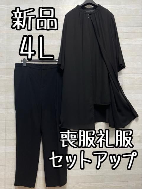 新品☆4L喪服礼服セットアップ黒パンツおしゃれロングブラウス☆D763