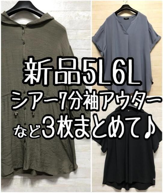 新品☆5L6L♪薄手シアーアウター・半袖チュニックブラウスなど3枚☆D771