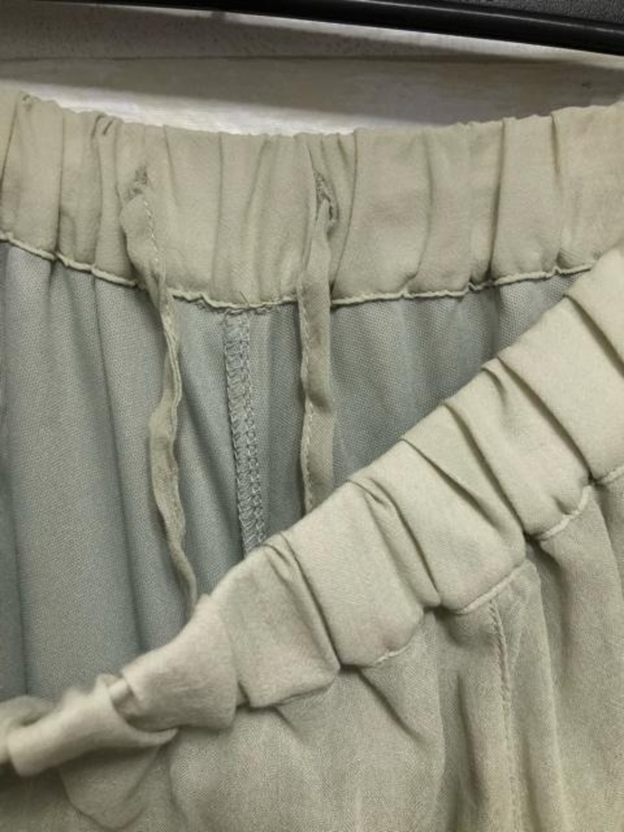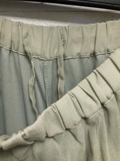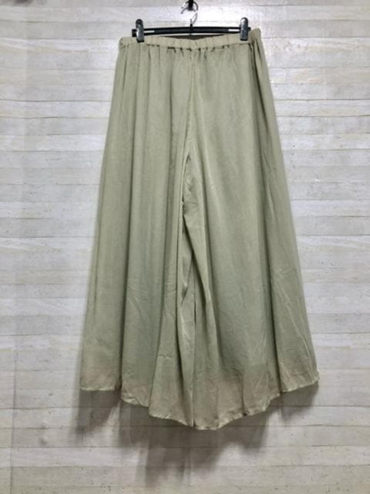 薄くて透け感のある素材のワイドパンツ