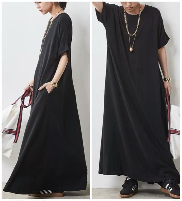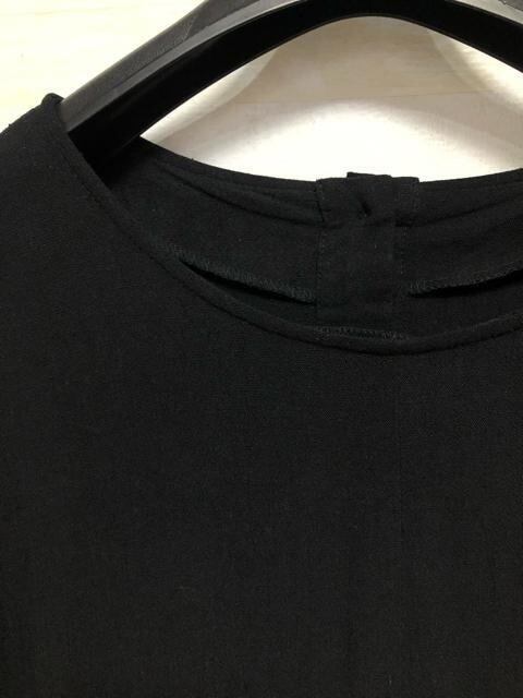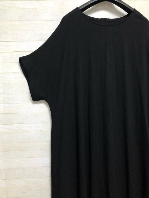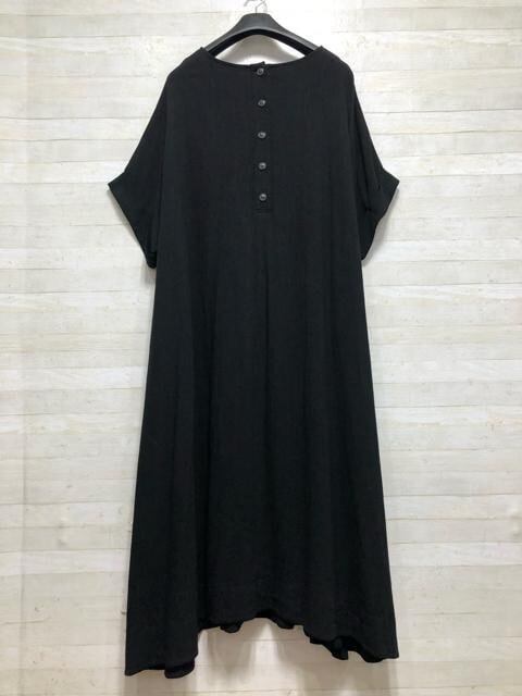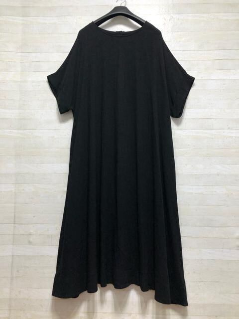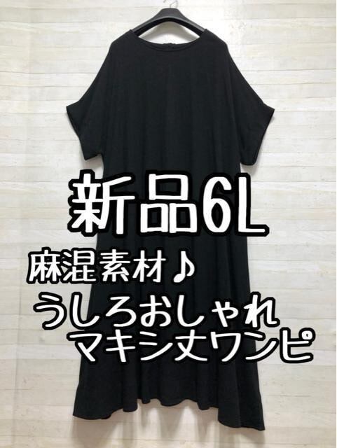新品☆6L♪黒系♪麻混おしゃれマキシ丈ワンピース♪後ろボタン♪☆D817