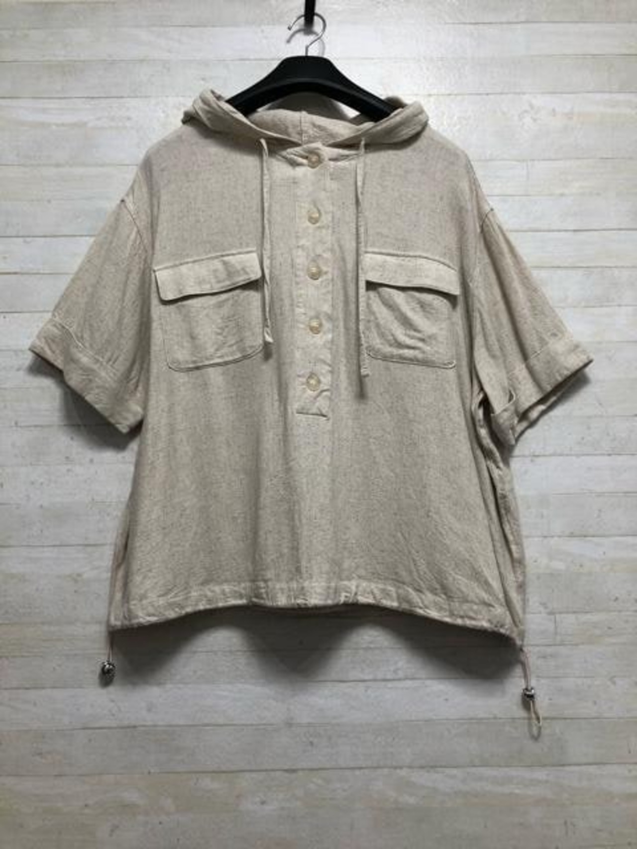 麻混素材のパーカーシャツ