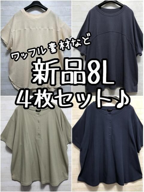 新品☆8L♪半袖ワッフルトップスなど4枚セット♪カジュアルおしゃれ☆D847