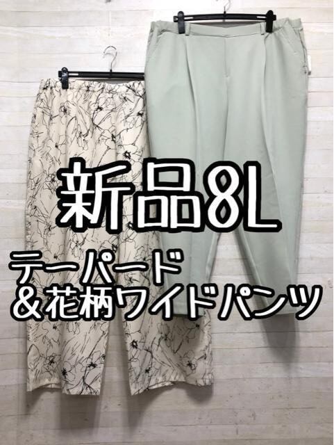 新品☆8L♪花柄ワイドパンツ&ミント色テーパードパンツ♪☆D855