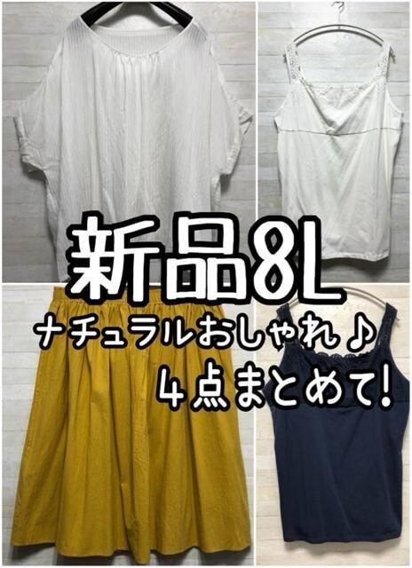 新品☆8L♪ナチュラルおしゃれなセット♪トップス・スカート・キャミ☆D866