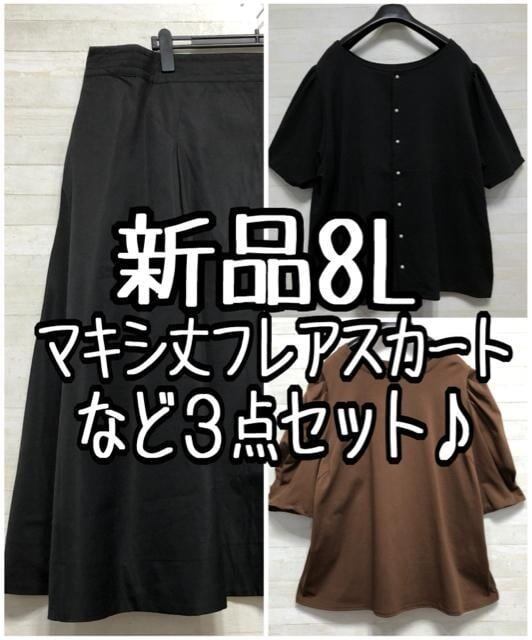新品☆8L♪黒マキシフレアスカートと袖ステキなトップスまとめて♪D867