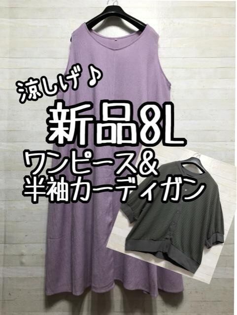 新品☆8L♪ラベンダー系涼しげワンピース&半袖シアーカーディガン☆D870