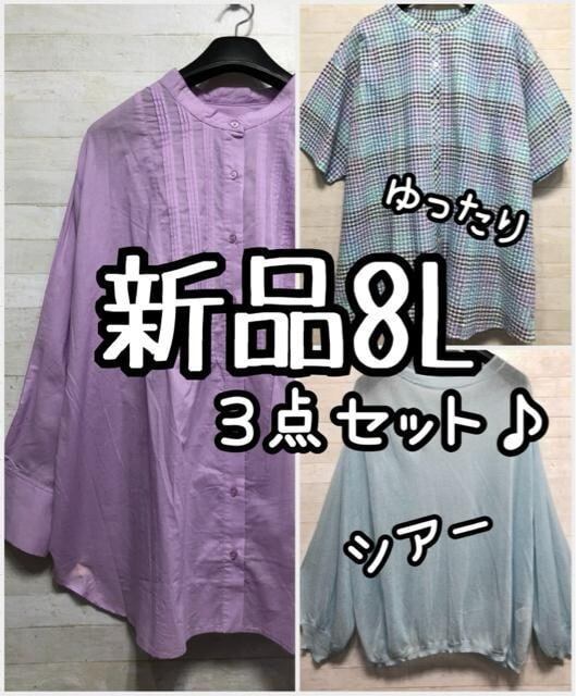 新品☆8L♪きれいなカラーのトップス3枚セット♪半袖シアー長袖☆D911