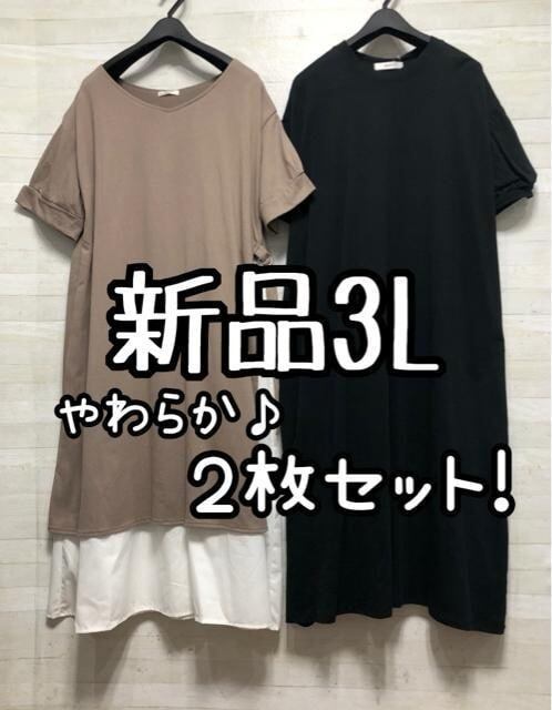 新品☆3L♪柔らか素材♪半袖ロングワンピース2枚セット♪かわいい☆D938