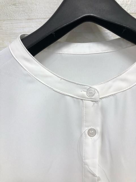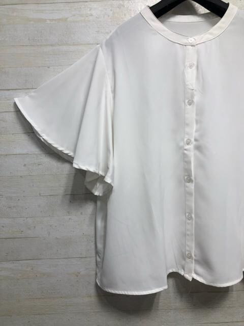 フレア袖がかわいいノーカラーブラウス♪
