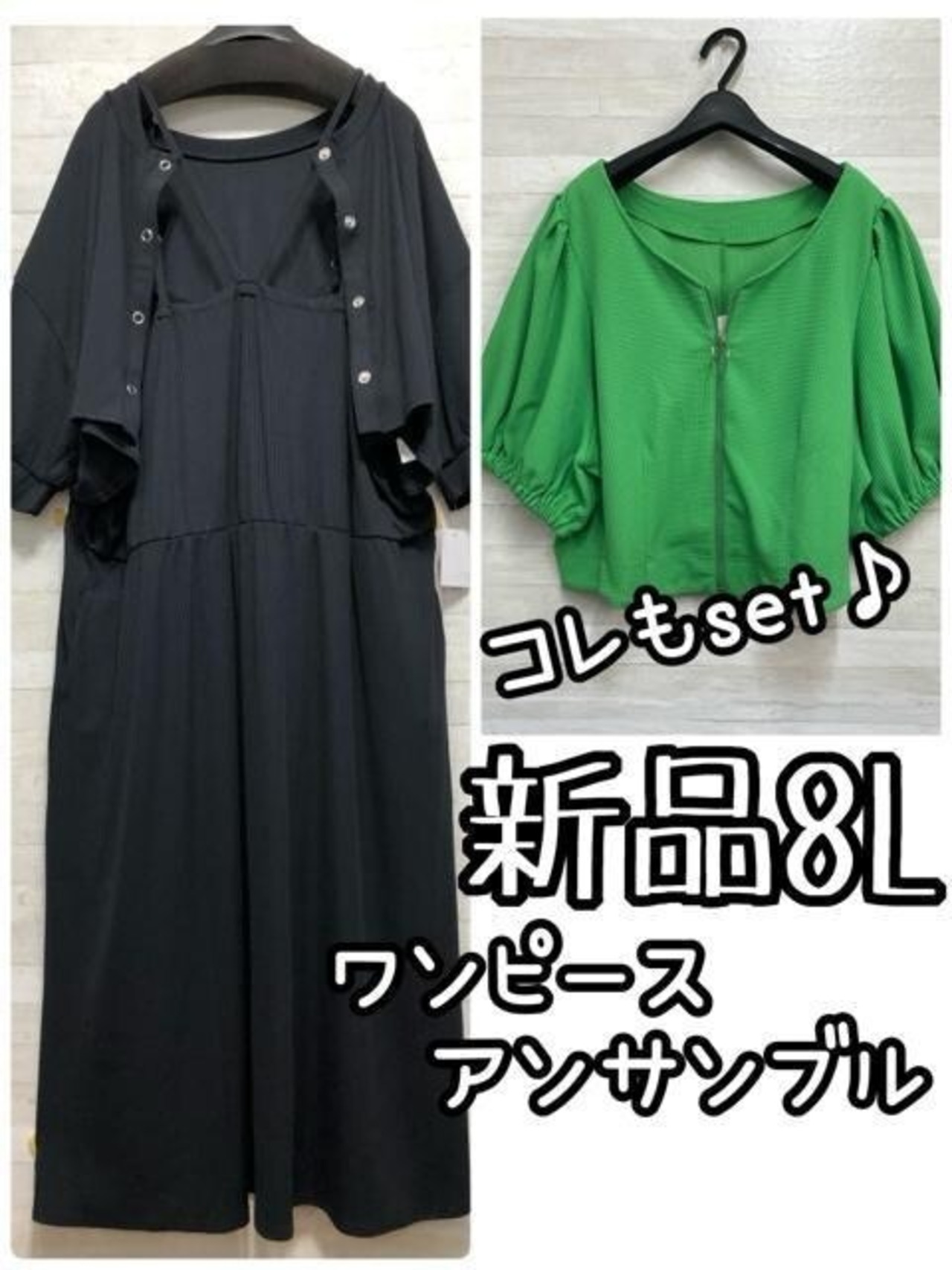 新品☆8L♪ストレッチワンピースのアンサンブル&ボレロトップス☆D921