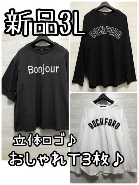 新品☆3L♪立体ロゴがおしゃれなTシャツ・ロンT♪カッコイイ♪☆D928