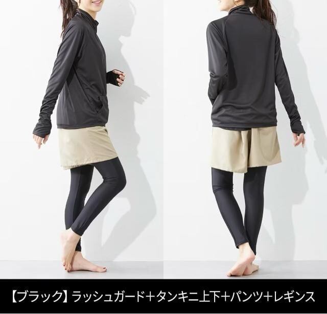新品☆4L♪黒ラッシュガード・レギンス付♪水着5点セット♪UVカット☆☆Q217