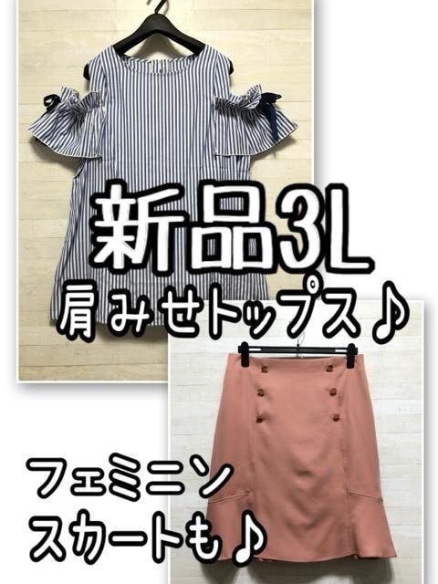 新品☆3L♪フェミニン♪肩出しトップス&スカート♪ブルー・ピンク☆D936