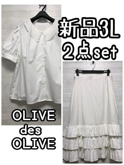 新品☆3L♪白ふりふりフェミニン♪OLIVEブラウス&フリルスカート☆D950