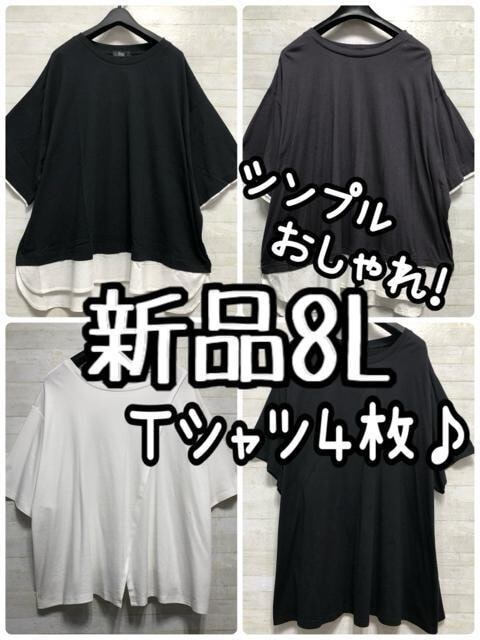 新品☆8L♪シンプルおしゃれTシャツ4枚まとめて!重ね着風デザイン☆D954