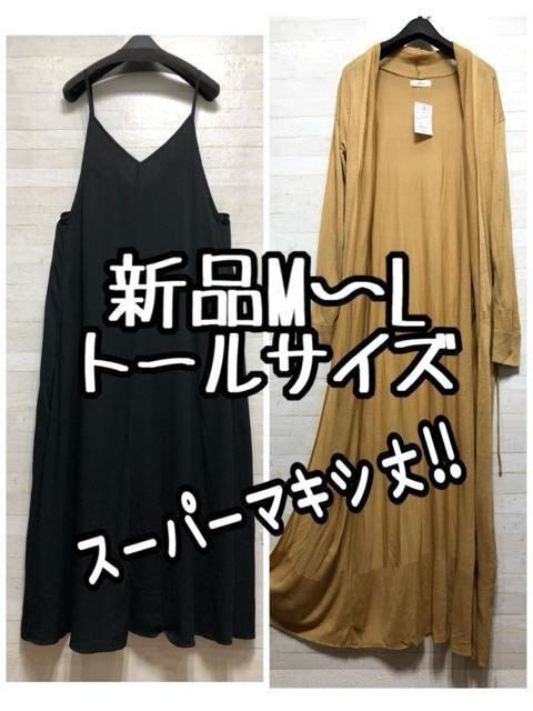 新品☆M~Lトールサイズ黒マキシ丈キャミワンピ&超ロングカーデ☆D963