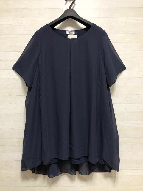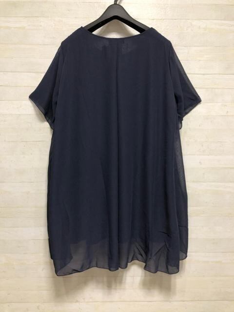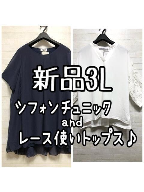 新品☆3L♪紺系シフォンチュニック&白レース袖トップス♪お出かけ☆D967