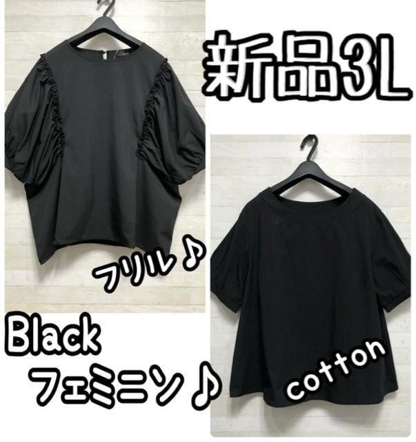 新品☆3L♪黒フェミニンかわいい半袖トップス2枚♪フリルブラウス♪☆D990