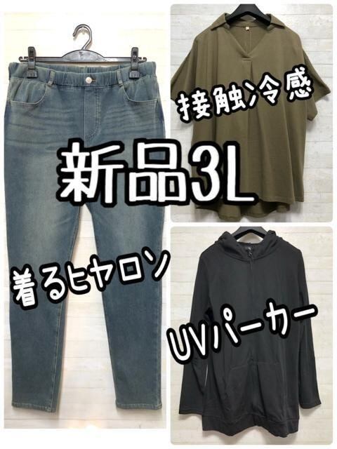 新品☆3L♪着るヒヤロンのデニムやUVパーカーなど3点まとめて♪冷感☆G606