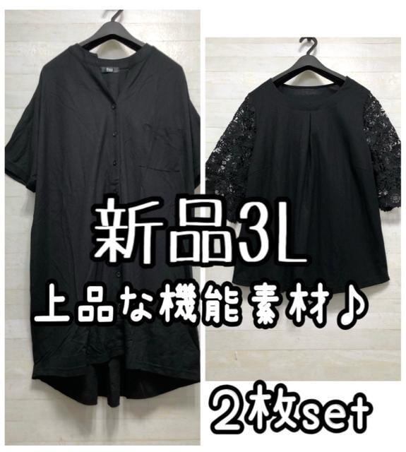 新品☆3L♪黒ひんやり大人素材なチュニックシャツ&ブラウス♪きれいめ☆G607