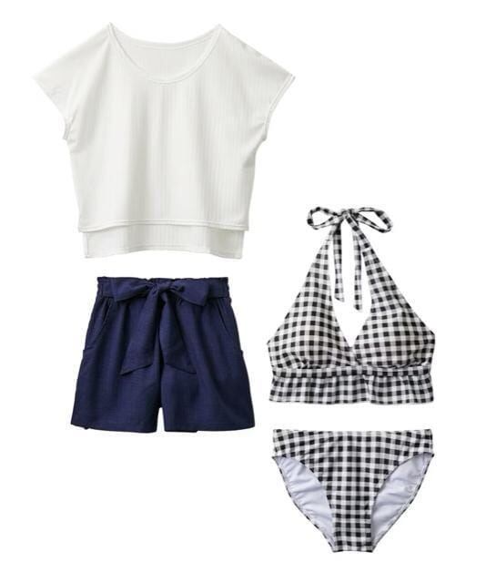 【ビスチェ風ビキニが素敵な水着4点セット♪】