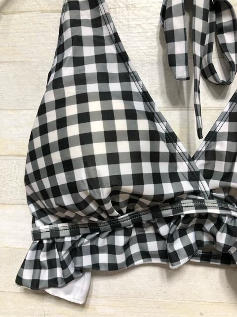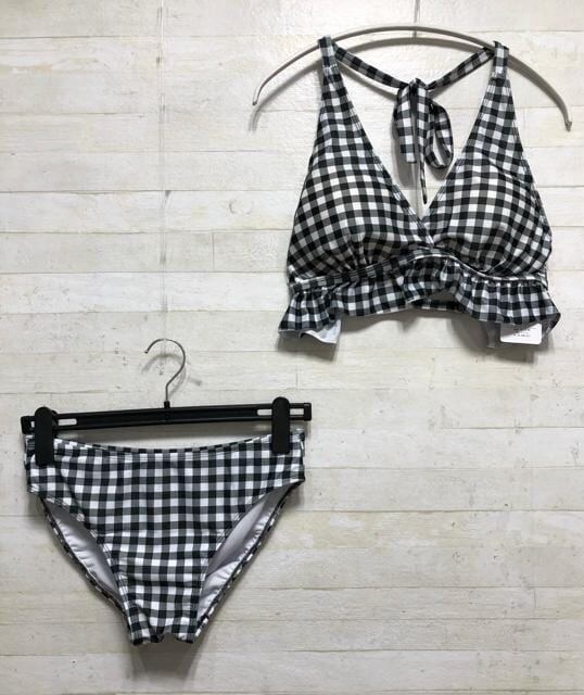 ・ビキニ上下(バストカップ取り外し可):黒系チェック