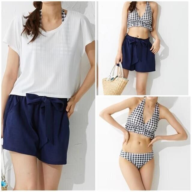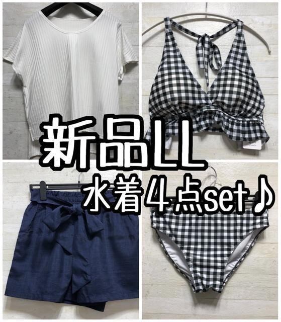 新品☆LL♪トップス・短パン付き♪チェックかわいいビキニ水着4点セット☆G659