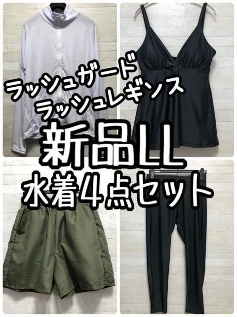 新品☆LL♪白ラッシュガード・レギンス付♪水着5点セット♪UVカット☆G697