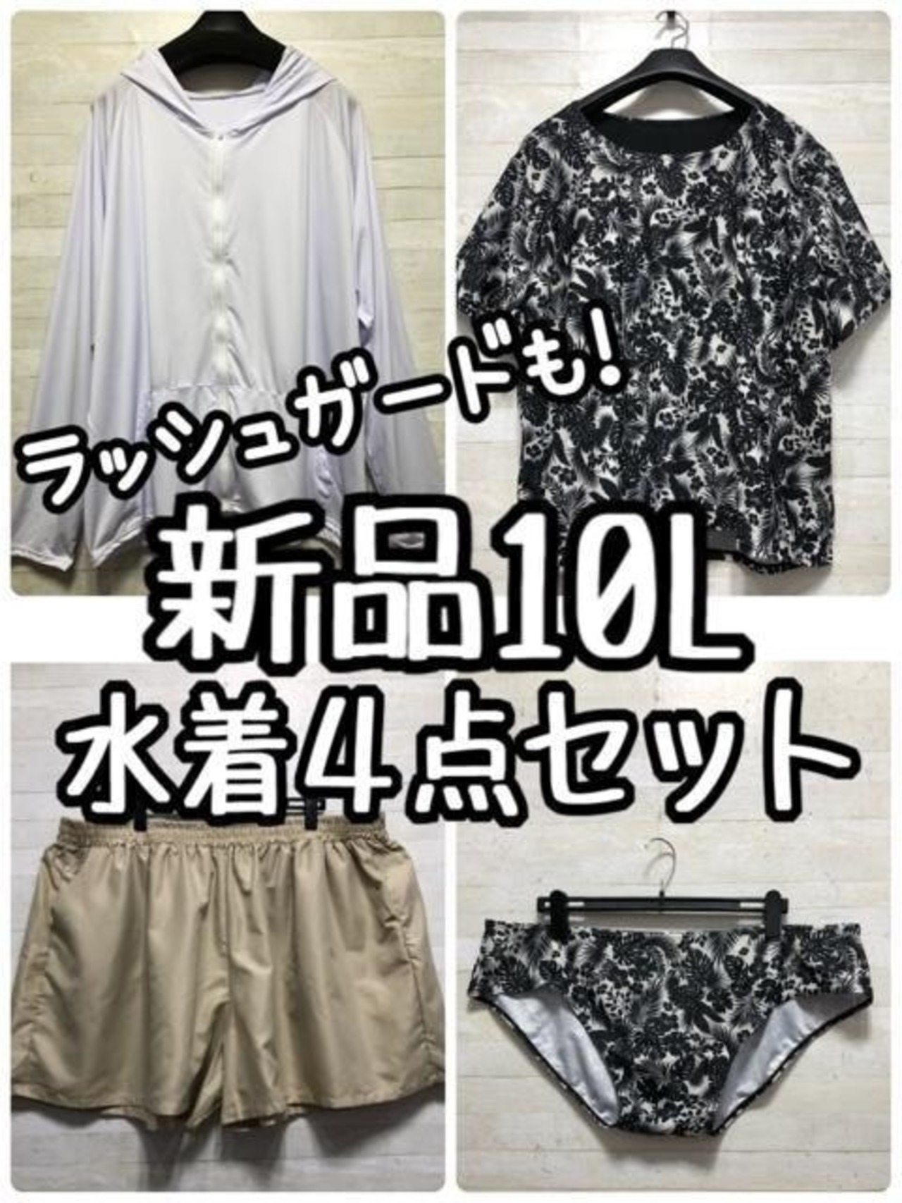 新品☆10L♪水着4点セット♪ラッシュガード・半袖タンキニ・短パン♪☆G691