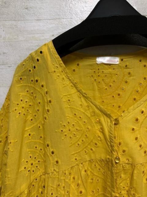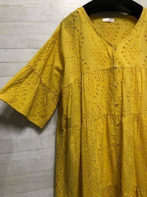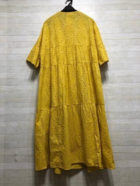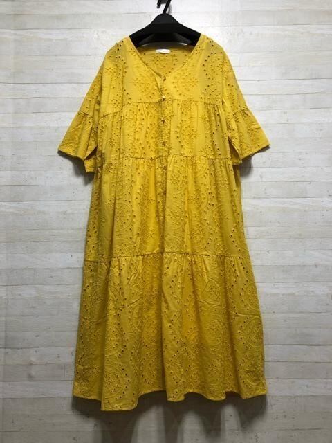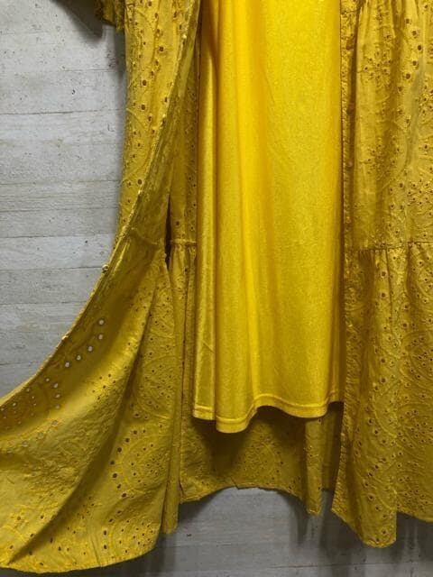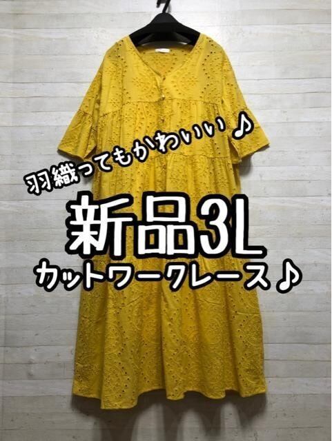 新品☆3L♪イエロー系♪カットワークレースの2WAYワンピース半袖♪☆G677