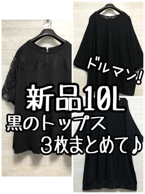 新品☆10L♪黒系半袖トップス3枚まとめて♪レース・サマーニット等☆G635