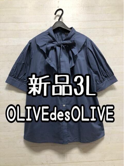 新品☆3L♪OLIVEdesOLIVE♪半袖ブラウス♪フェミニン♪ボウタイ☆G719