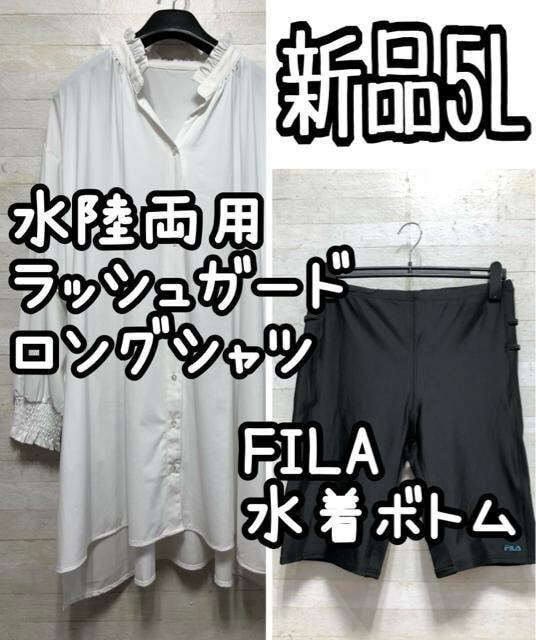 新品☆5L♪水陸両用ラッシュガードロングシャツ&FILA水着ボトム☆G700