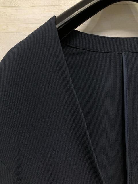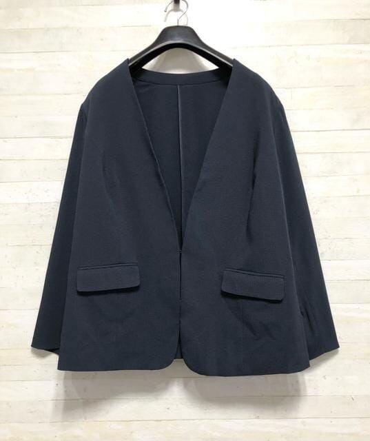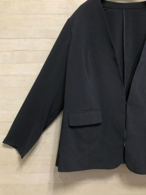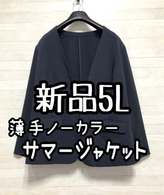 新品☆5L♪ネイビー紺系♪ノーカラー♪サマージャケット♪薄手☆G736