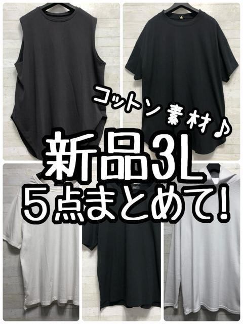 新品☆3L♪Tシャツ素材いろいろ5点まとめて♪ベスト・シンプルTなど☆G738