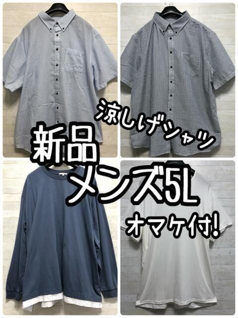 新品☆メンズ5L♪涼しげ半袖シャツ2枚などまとめて♪ボタンダウン☆G749