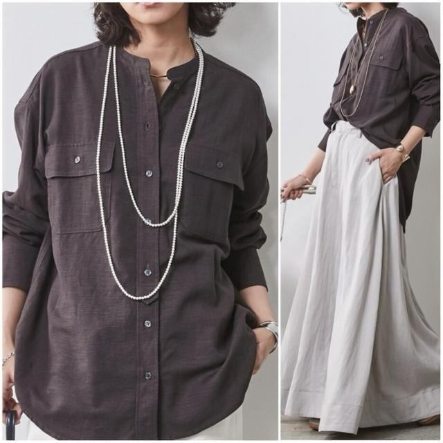 新品☆5L♪大人おしゃれな麻混ノーカラーシャツ&タンクトップ♪☆G746