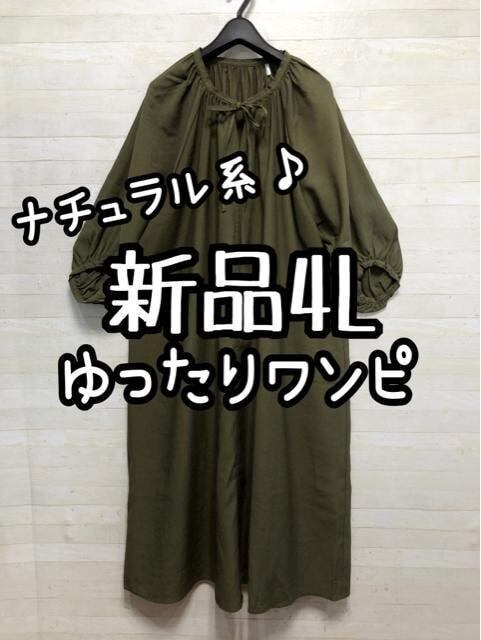 新品☆4L♪カーキ系♪ゆったりナチュラル♪ロングワンピース♪☆G758
