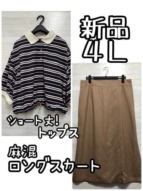 新品☆4L♪麻混ロングタイトスカート&ショート丈ポロシャツ♪☆g759