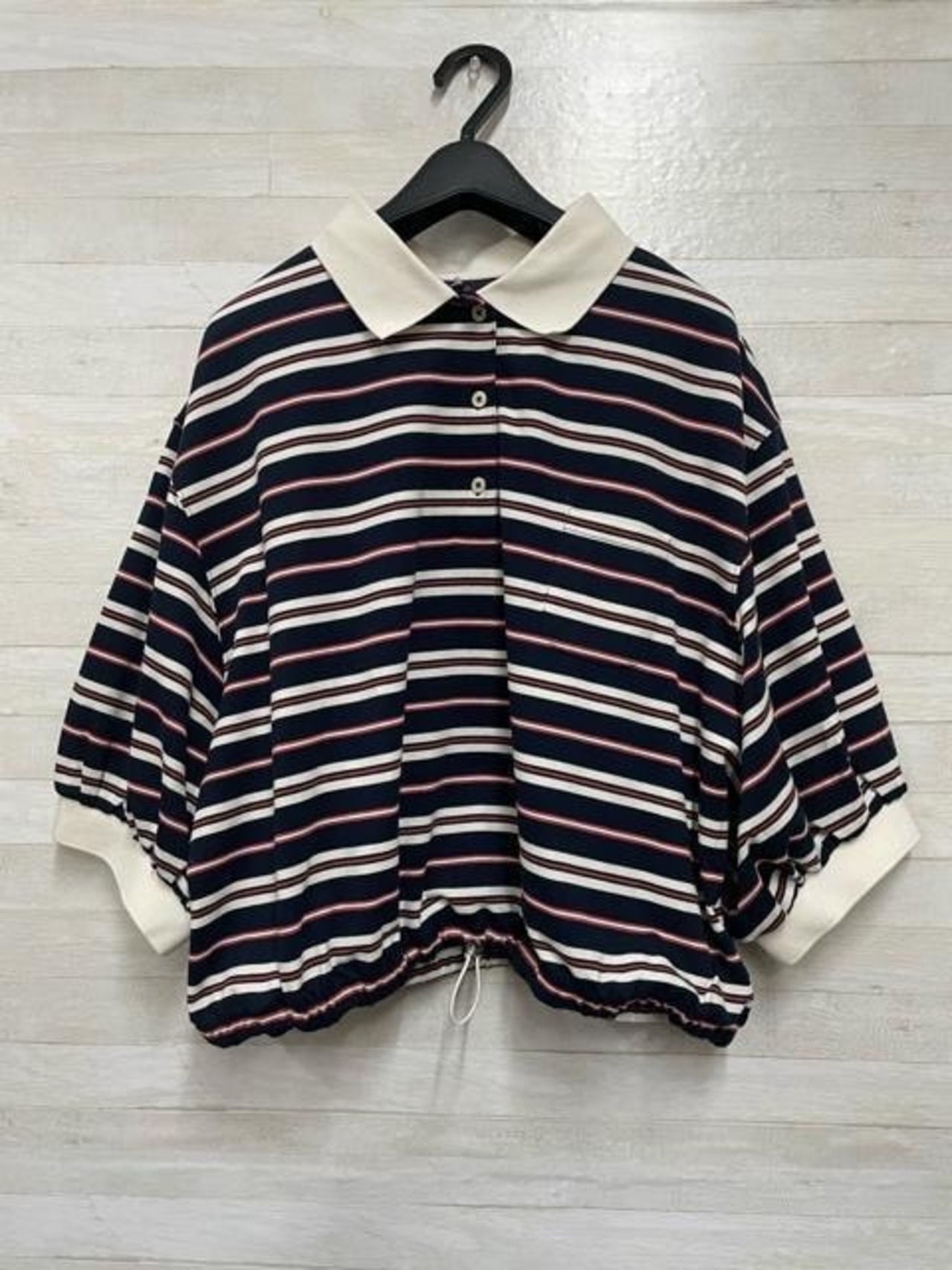 ポロシャツは裾にゴムドロスト入りで絞れます♪