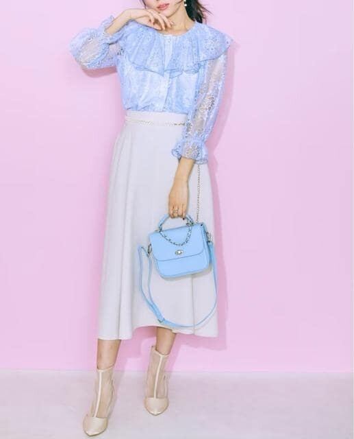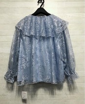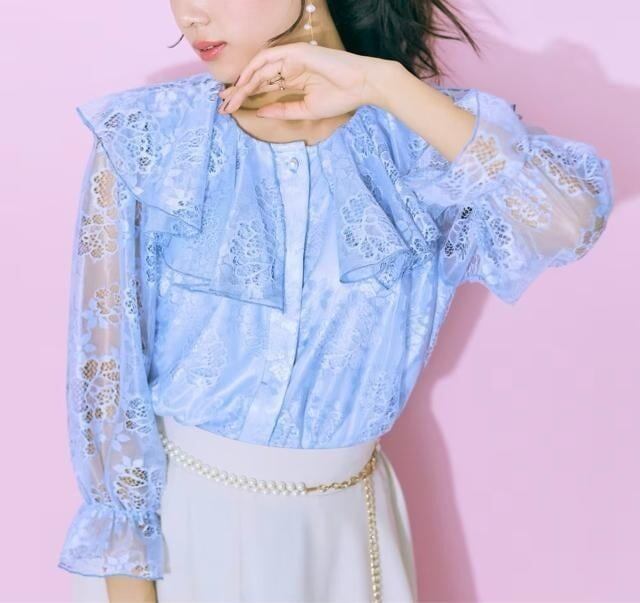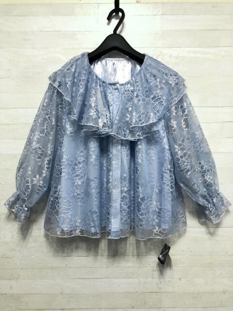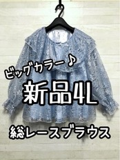 新品☆4L♪ブルー系♪大きい襟の総レース♪フェミニンブラウス♪☆G762