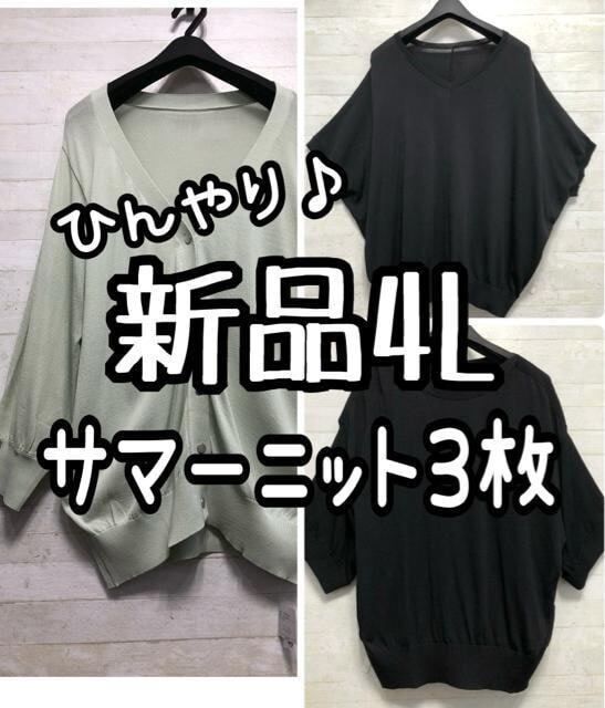 新品☆4L♪ひんやりサマーニット3枚まとめて♪半袖・カーディガン☆G764