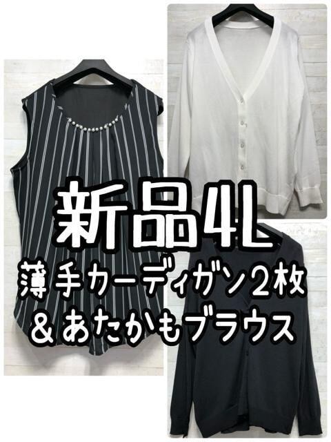 新品☆4L♪黒白系♪薄手カーディガン2枚+あたかもブラウス♪☆G766
