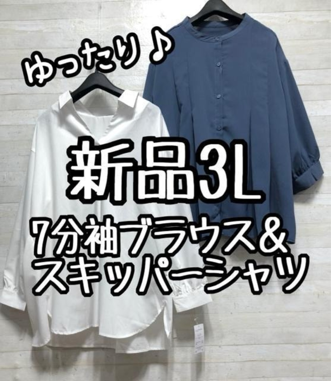 新品☆3L♪きれいめゆったり♪7分袖ブラウス&白スキッパーシャツ♪☆G773