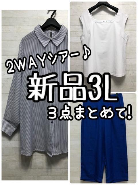 新品☆3L♪透け感シアー2WAYシャツやワイドパンツなどまとめて♪☆G812
