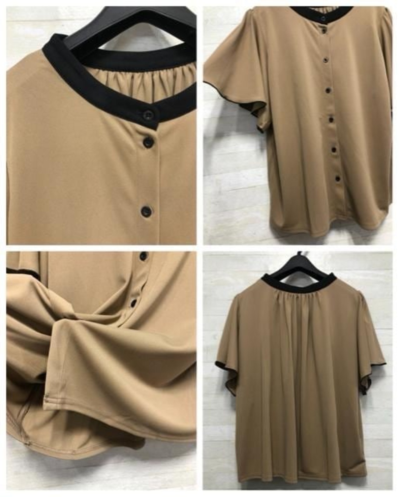 新品☆3L♪黒・ブラウン系きれいめ半袖ブラウス2枚♪お出かけ・お仕事☆G819