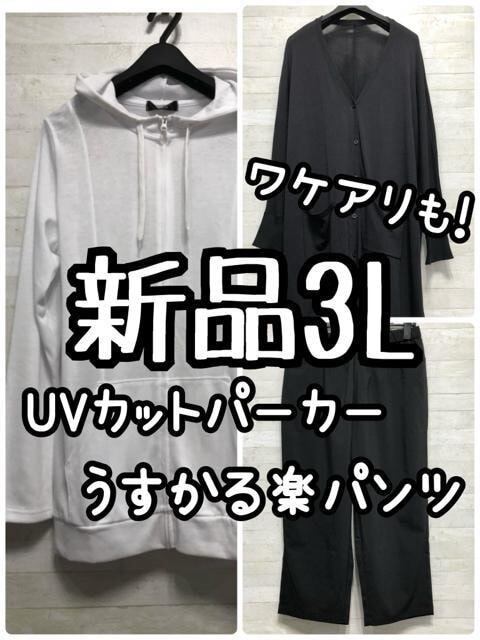新品☆3L♪UVパーカー・薄手カーディガン・うすかるアンクルパンツ♪☆G823